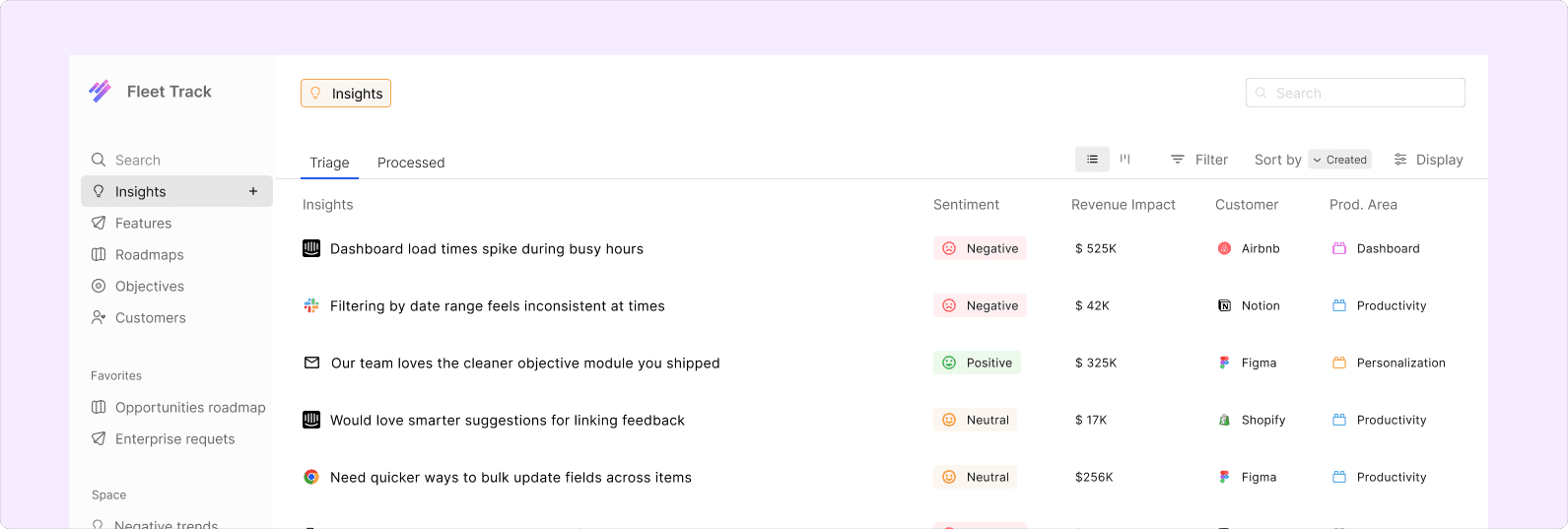 Revenue Context: Lane syncs with your CRM to show you the exact dollar amount associated with every feature request.