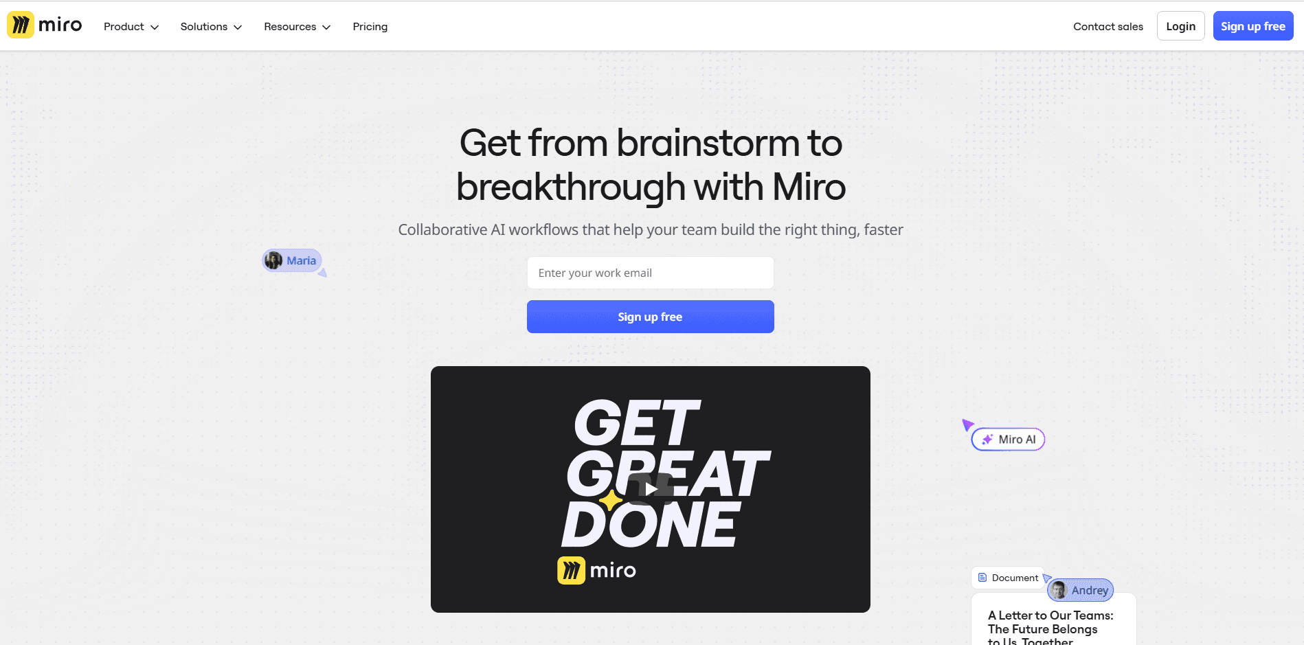 Fig- Miro website homepage showcasing the product overview