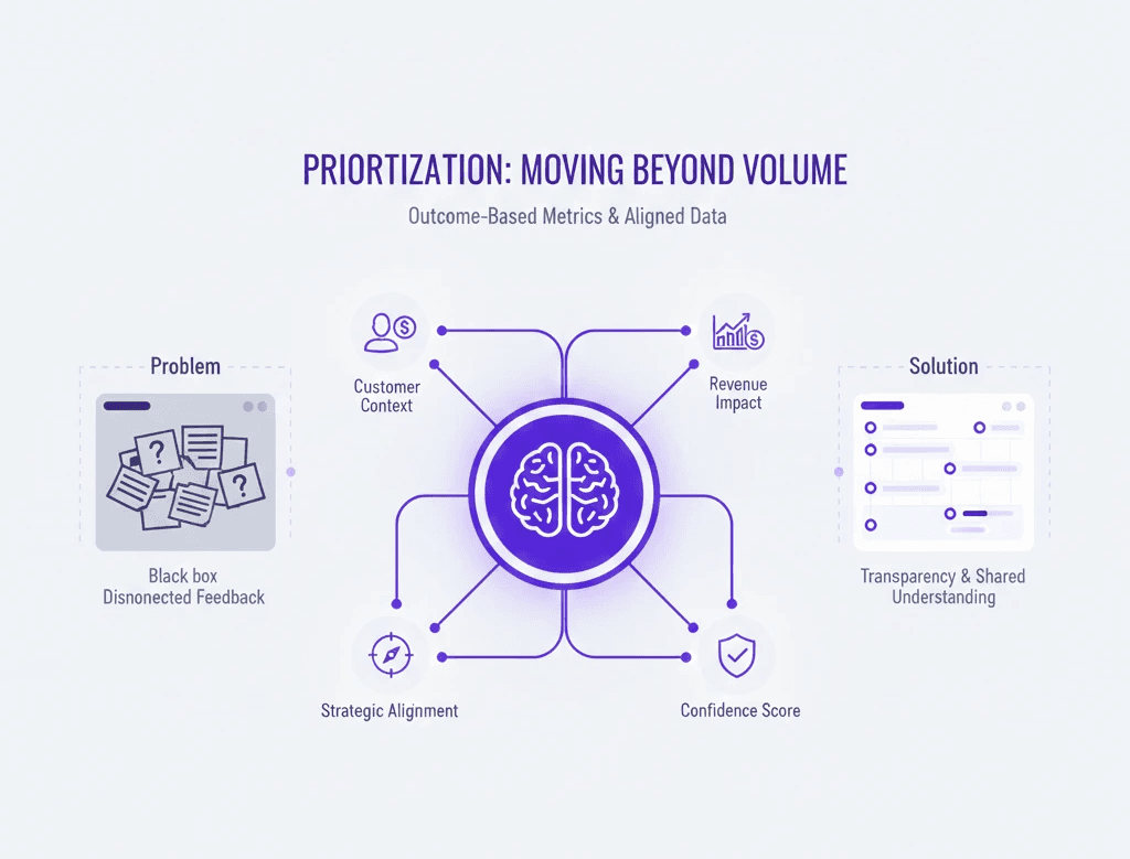 The Agitation: When your discovery process is disconnected from your roadmap, your team loses trust. Sales doesn't know why a key prospect's request was deprioritized, and Product doesn't know which features will actually drive expansion.